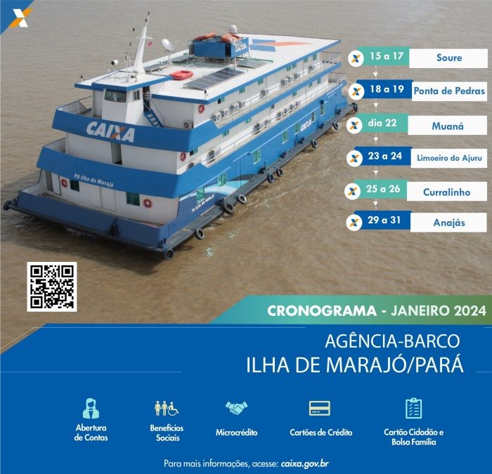 Nesta terça-feira (23) e quarta-feira (24) a Agência-Barco atende em Limoeiro do Ajuru. Nos dias 25 e 26 o atendimento ocorre em Curralinho. E dias 29 e 31 em Anajás, encerrando a jornada de janeiro.
