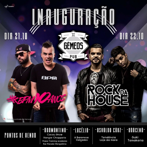 Com uma ambientação e personalidade exclusiva, o Gêmeos Pub começa a funcionar nesta sexta-feira (21) em Adamantina. O mix de bar e casa noturna promete trazer um novo conceito de diversão, à noite regional, com a assinatura dos irmãos gêmeos Henrique Sartorato e Fernando Sartorato.