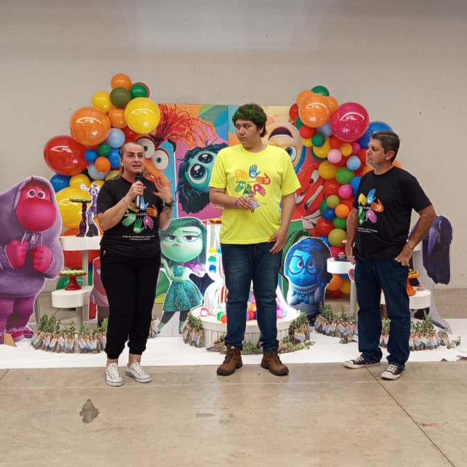 A decoração teve como tema o filme “Divertidamente”, uma escolha simbólica que representou a diversidade de emoções vivenciadas diariamente pelas crianças atípicas em suas jornadas de superação, força e amor. A proposta reforçou a mensagem de que todas as emoções são parte essencial do crescimento e da vida.