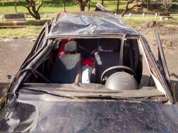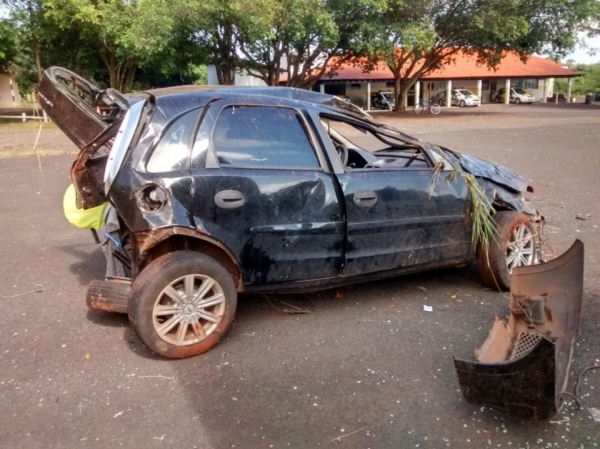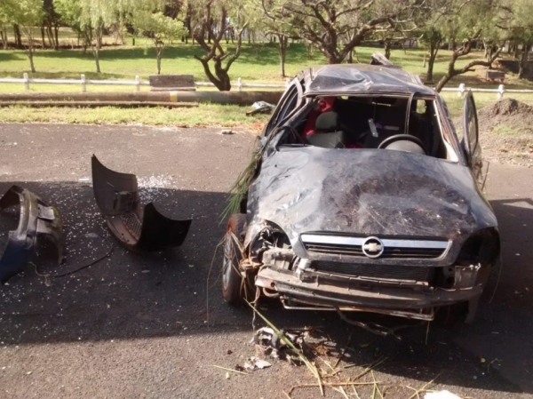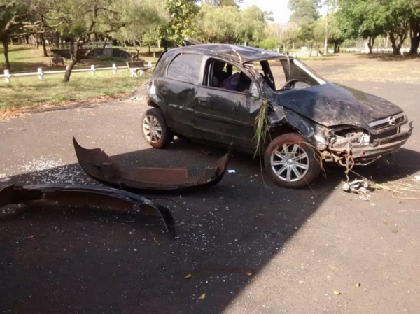 Após o impacto o motorista do Corsa perdeu o controle da direção e capotou várias vezes.