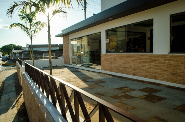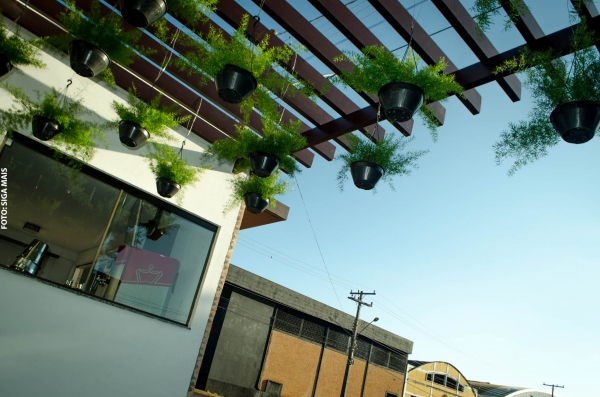Já a área externa, ao ar livre, recebeu mesas e cadeiras dispostas no entorno do prédio, tanto na Avenida Adhemar de Barros quanto na Alameda Maria Cândida Romanini.
