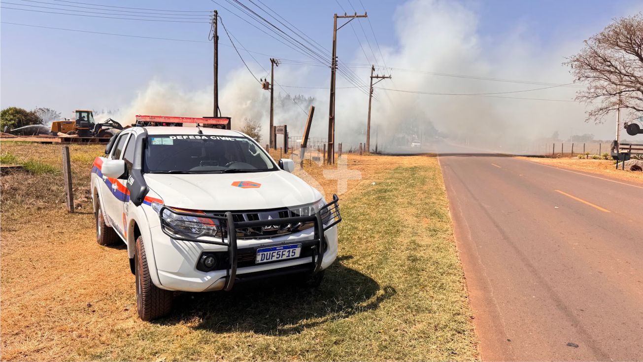 A madeira em chamas está depositada ao lado de uma madeireira, em um terreno. A baixa umidade do ar e ventos favorecem a propagação das chamas. Uma cortina de fumaça atravessa a estrada José Bocardi onde o trecho tem visibilidade prejudicada.