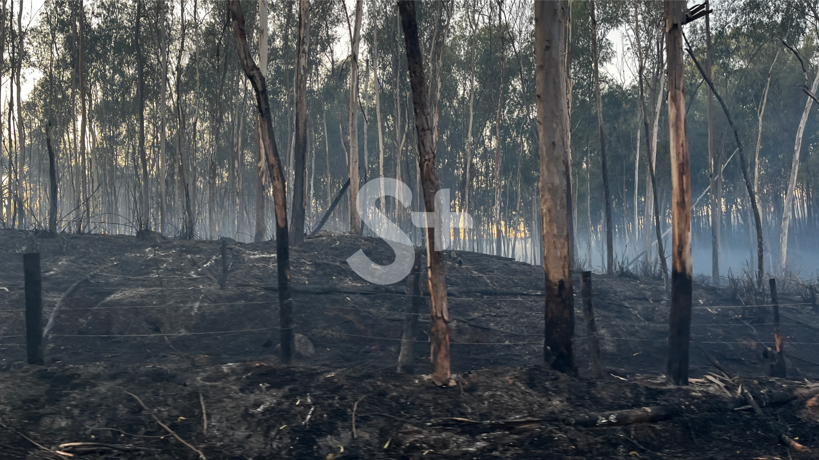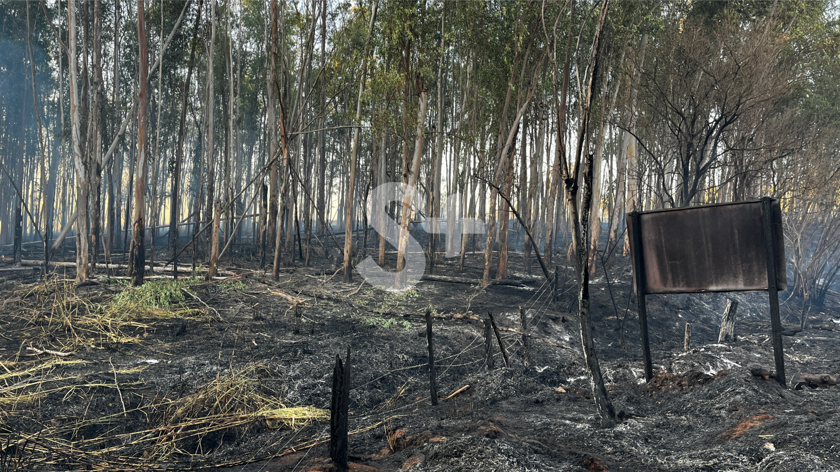 Local fica próximo ao antigo curtume. Chamas atingiram plantio de eucaliptos.