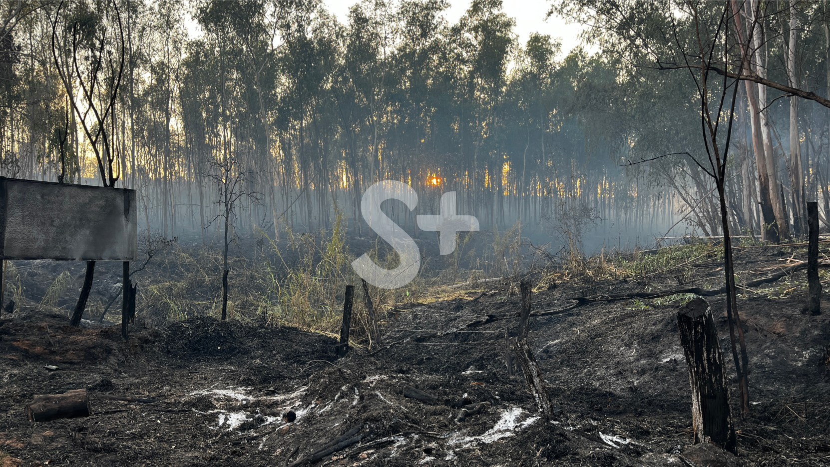 O fogo ocorreu em uma área de plantio de eucaliptos próximo às instalações da empresa desativada, propagou rapidamente e avançou por uma longa faixa na Estrada 2 (Estrada Geraldo Jordão).