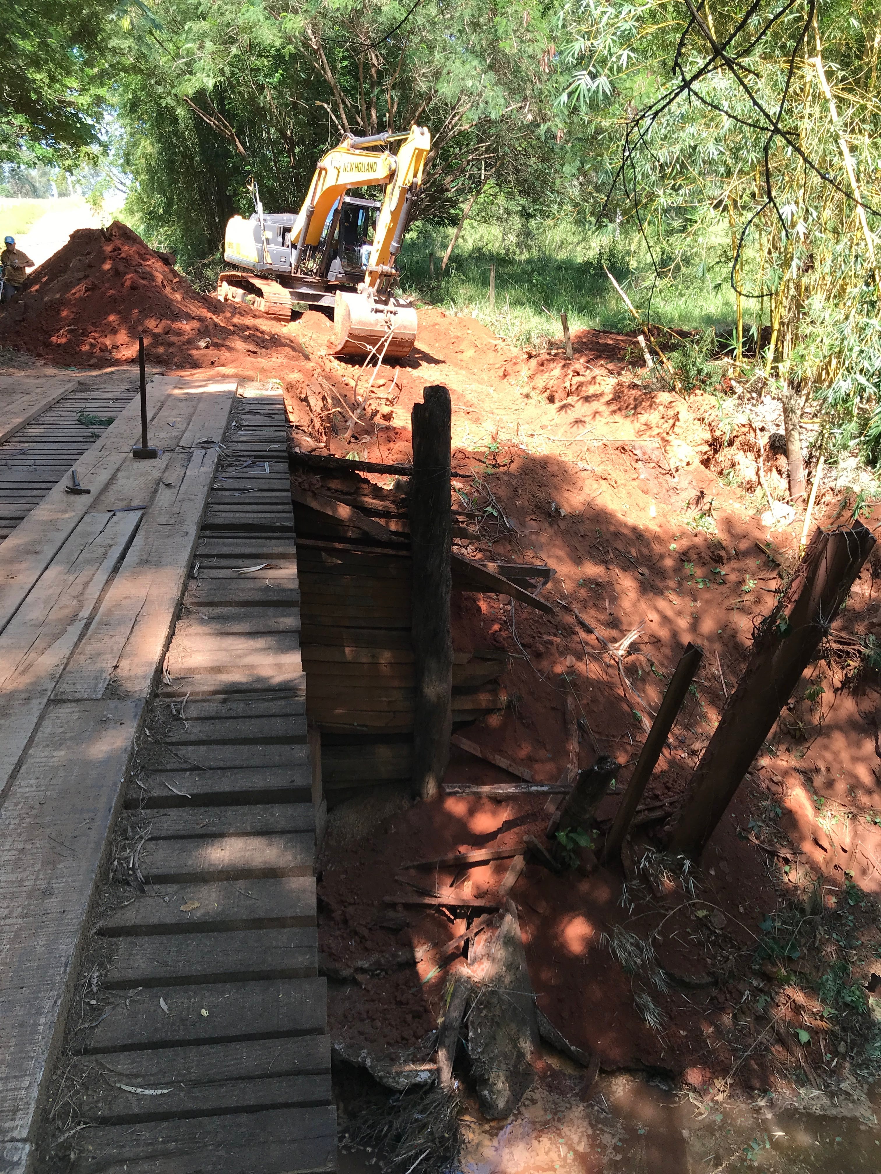 A Secretaria Municipal de Obras iniciou nesta segunda-feira (27) a recuperação de uma estrutura de contenção na lateral da cabeceira da ponte de madeira localizada no início da Estrada 6, ao final da Rua Santa Catarina, em Adamantina.
