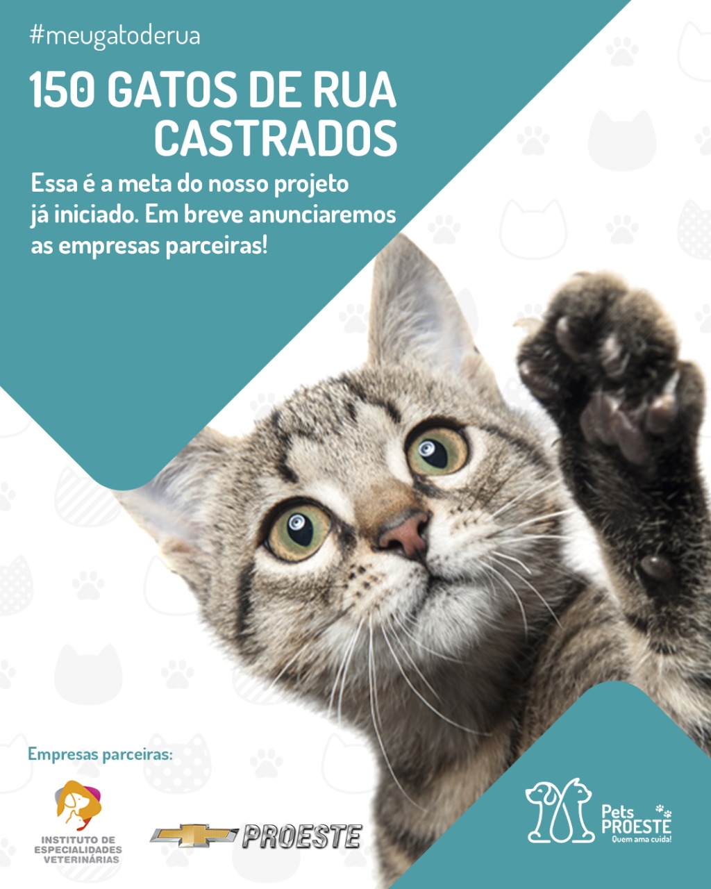 Uma iniciativa da Proeste, concessionária Chevrolet para Adamantina e região, mobiliza parceiros e a comunidade para a arrecadação de fundos que serão destinados integralmente à castração de gatos de rua. A campanha “Meu Gato de Rua” já ocupa as redes sociais em busca de adesões e apoiadores. A ação pretende castrar 150 animais.