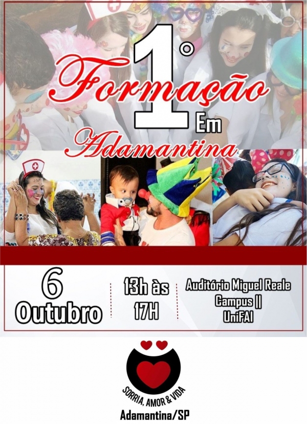 A capacitação do “Sorria, Amor e Vida”, em Adamantina, vai acontecer no dia 6 de outubro, das 13h às 17h, no auditório do Campus 2 da UniFAI, com o desafio de preparar a base inicial, para assim crescer, de maneira sustentável e com responsabilidade, e atuar na cidade e região. Qualquer interessado que se identifique com a iniciativa pode participar.