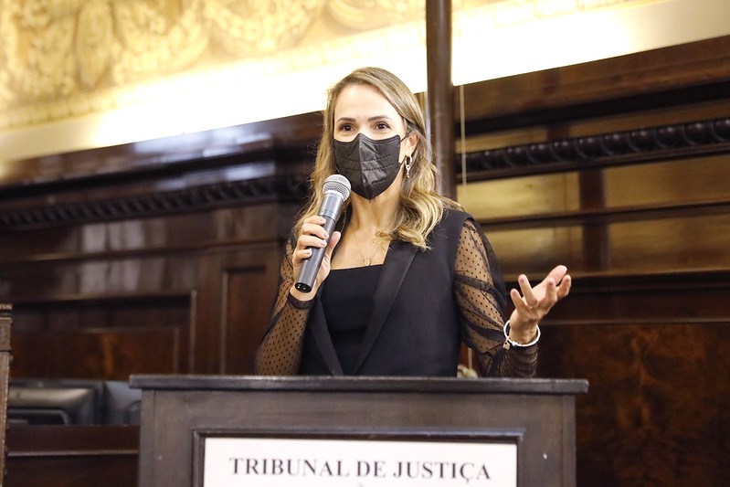 Ruth Menegatti fala no Palácio da Justiça (Foto: Paulo Santana/TJSP).