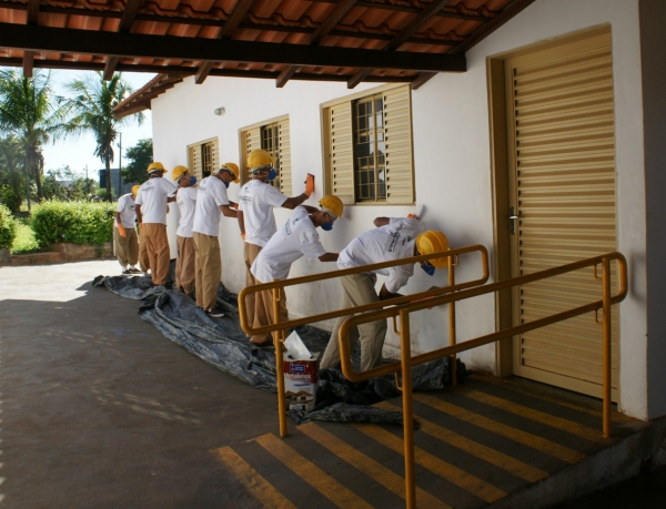 O estabelecimento foi escolhido para a execução de 15 aulas práticas do curso profissionalizante, iniciado com aulas teóricas no dia 06 de novembro, nos mesmos moldes em que outra turma executou a pintura do “Pólo de Atividades Integradas (PAI) Nosso Lar” de Adamantina, no mês passado (reveja). Além das duas turmas que estão no asilo, com 25 alunos cada, uma outra está pintando o próprio CPP de Pacaembu.