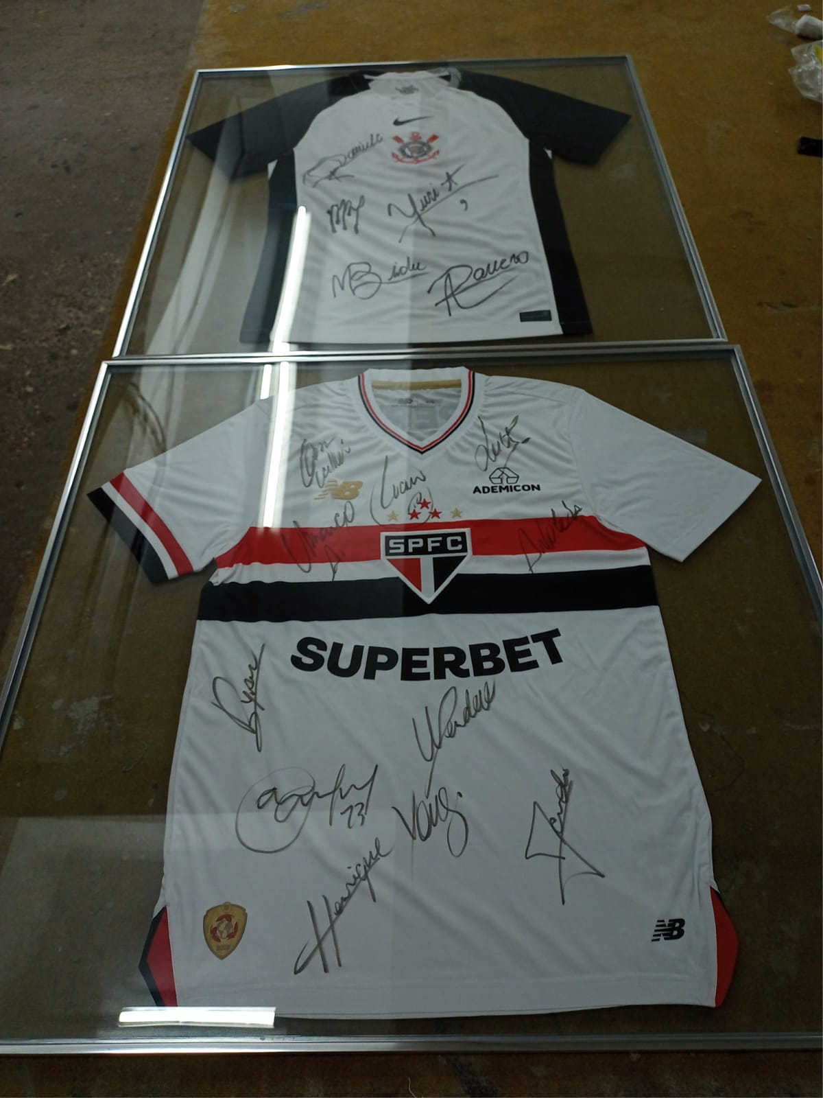 Entre os brindes, dois destaques são as camisetas do São Paulo FC e EC Corinthians, ambas autografadas por atletas dos seus elencos. As camisetas serão ofertadas separadamente e já estão emolduradas em estrutura de vidro e alumínio.