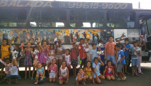 Crianças do Jardim Brasil receberam ovos de chocolate e se divertiram no Ônibus Balada.