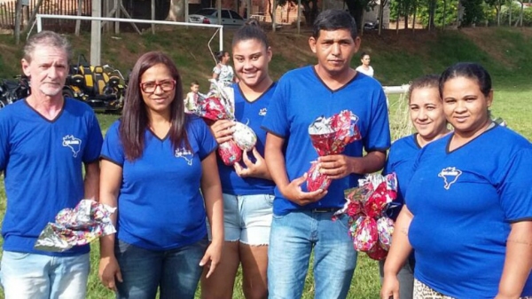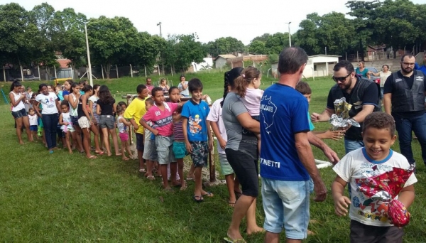 A distribuição foi no campo do Jardim Brasil e contou com a participação dos integrantes do Moto Clube Firmeza e do Ônibus Balada. Os participantes do moto clube, junto com a presidente da Associação de Moradores e outros colaboradores organizaram a distribuição, no campo. E também saíram pelas ruas do bairro para a entrega de ovos de chocolates para as crianças.