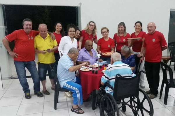 Além dos presentes, o Lions Clube doou os ingredientes para as pizzas que foram servidas no jantar. Em seguida, foi servido bolo aos idosos.