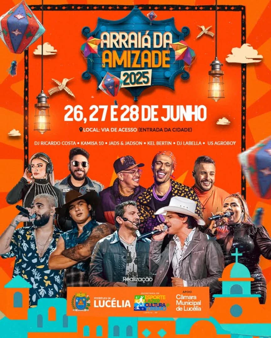 Em Lucélia o evento recebe o nome de “Arraiá da Amizade” e acontece de 26 a 28 de junho na Via de Acesso, em frente ao terminal rodoviário, e integra as comemorações oficiais de aniversário da cidade, celebrado em 24 de junho.