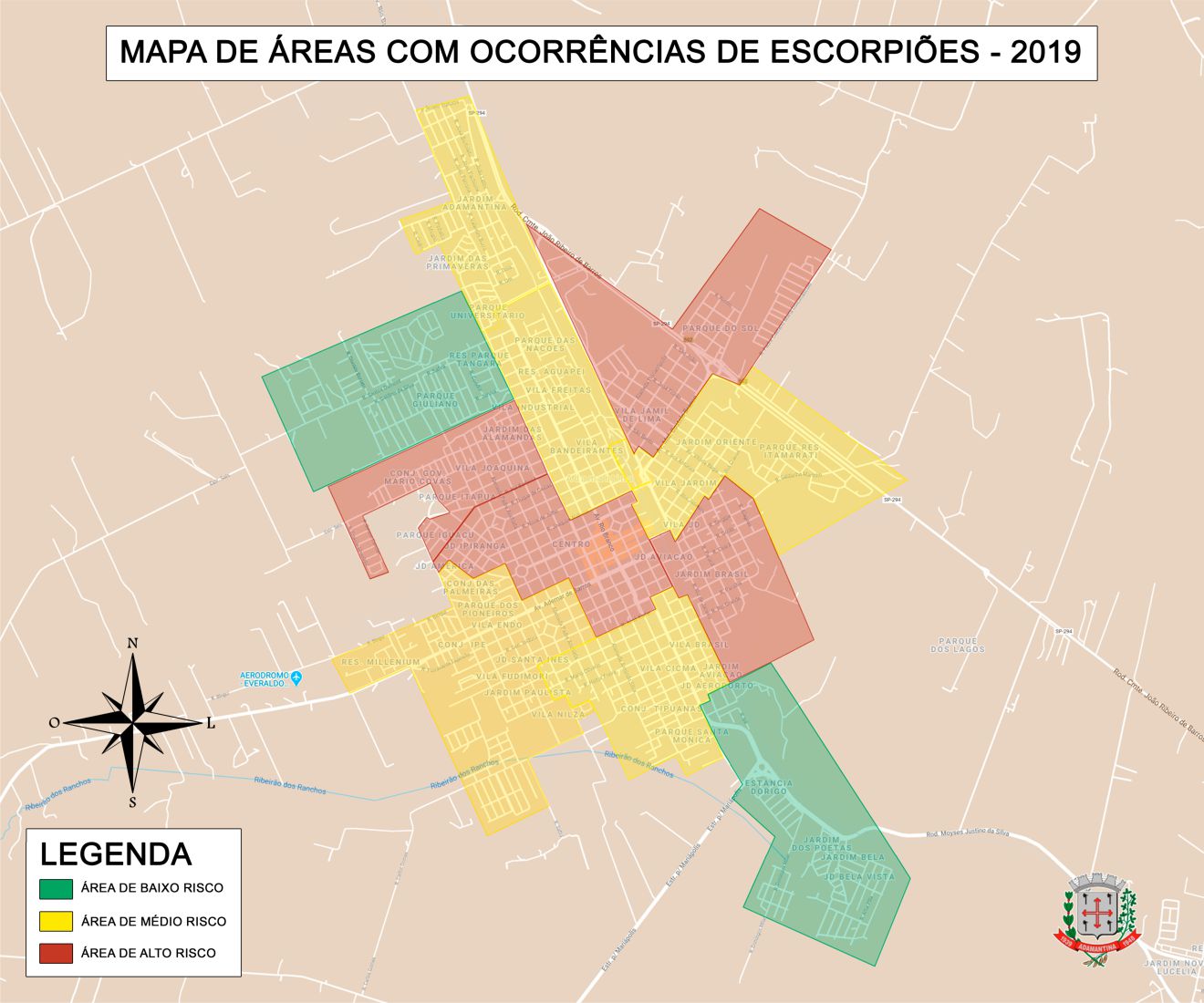 A Prefeitura de Adamantina, por meio da Secretaria Municipal de Saúde, através do Departamento de Controle de Vetores construiu um mapa das áreas de maior ocorrência de aparecimento de escorpiões em 2019.