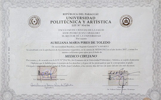 Os acusados apresentaram à Tribuna Bastos todos os documentos oficiais emitidos e autenticados por esses órgãos em seus nomes: os diplomas da universidade paraguaia, as provas nacionais que avaliam as habilidades para o exercício da medicina e os documentos de revalidação dos diplomas.
