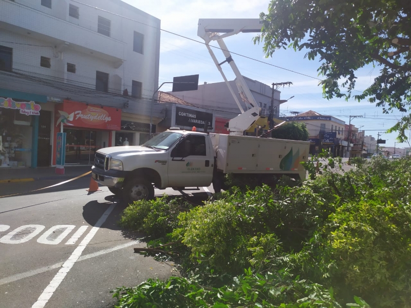“Neste domingo, 10, a Elektro esteve na Praça Arthur Pagnozzi fazendo poda das árvores, o objetivo foi limpar a fiação elétrica, uma vez que os galhos já estavam sobressaindo aos fios.