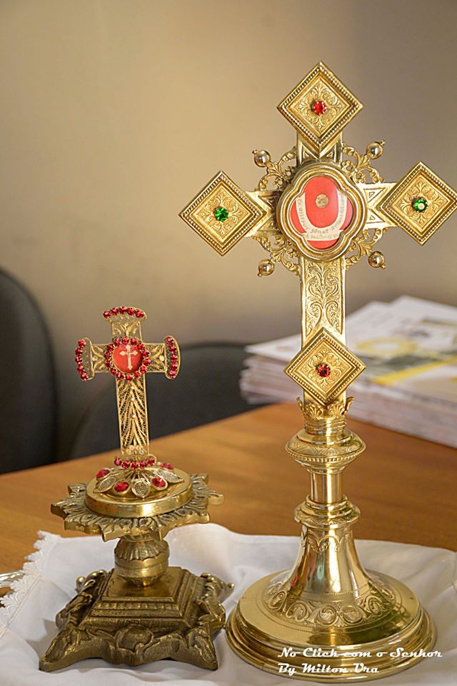 Foram recebidas também, no altar, duas relíquias sagradas que integram o acervo da Igreja Matriz: um fragmento da cruz de Cristo, trazido de Roma em 1965, e uma relíquia de Santo Antônio. As relíquias foram levadas ao altar por Antônio Passarinho (Secretário do Conselho de Pastoral) e Vera Trentino (Coordenadora da Associação Assistencial Pão de Santo Antônio).