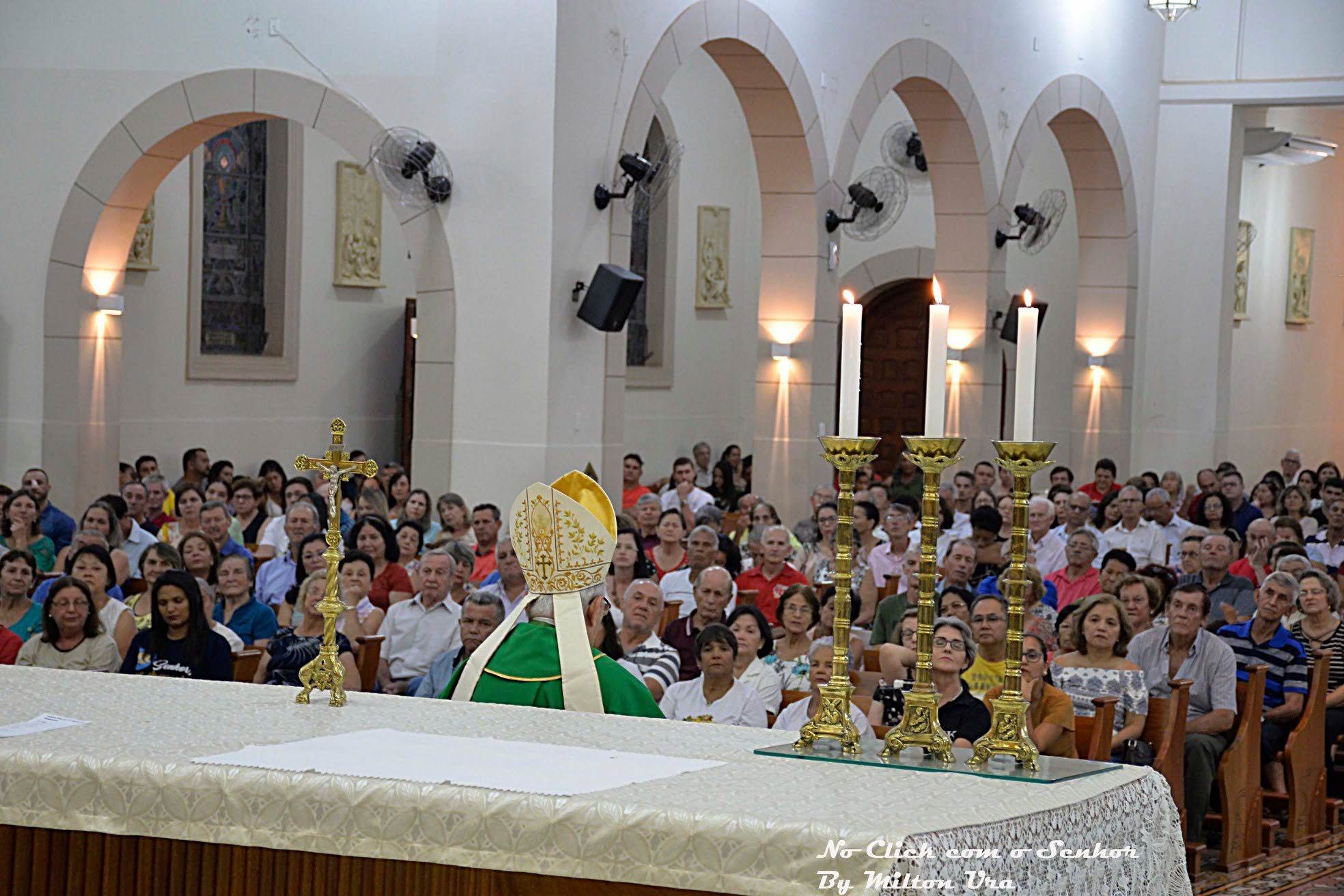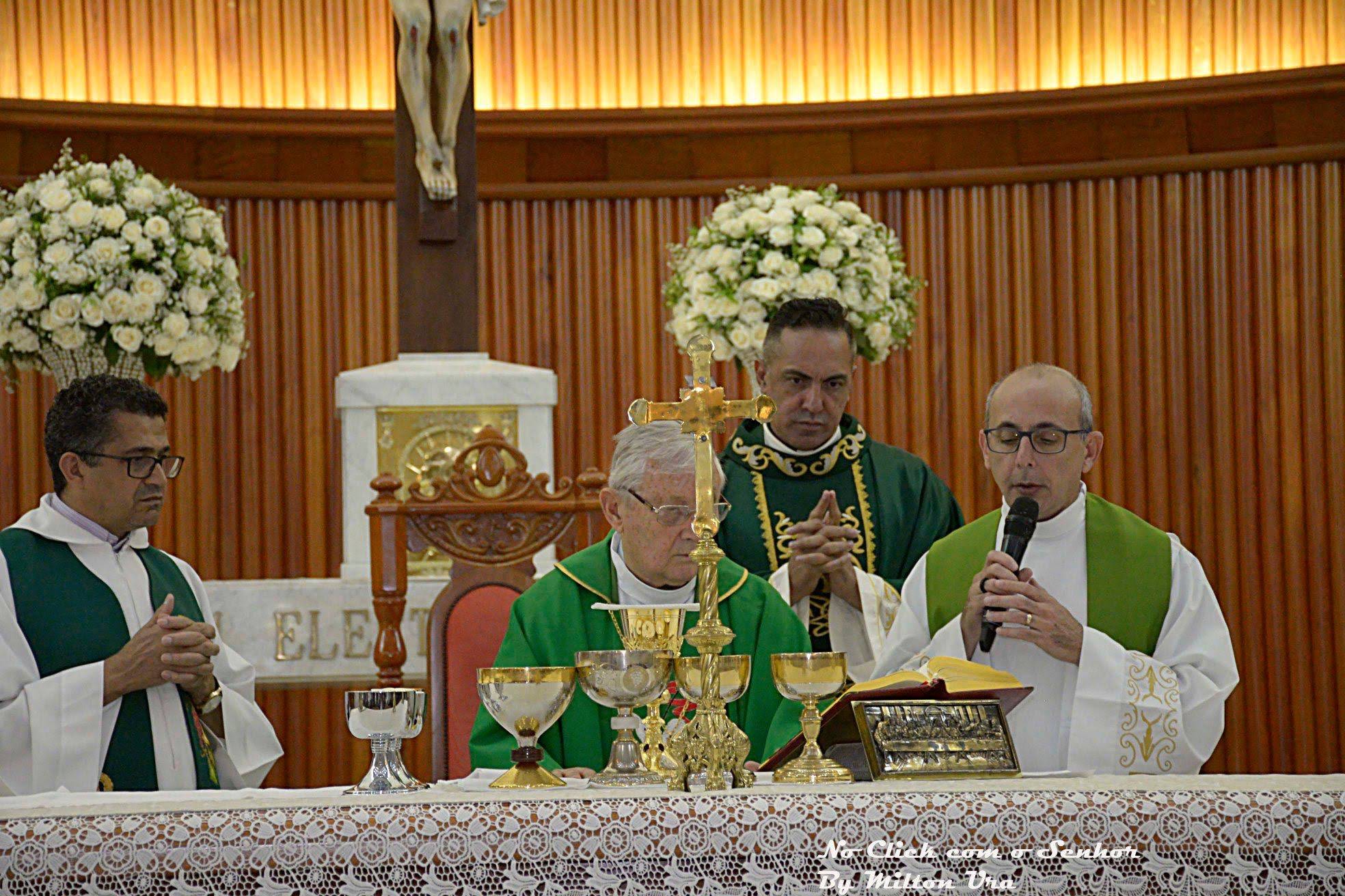 Presidida pelo bispo emérito, a missa foi concelebrada pelos padres Rui Rodrigues da Silva (pároco da Igreja Matriz de Santo Antônio), Afonso Maniscalco (pároco da Igreja Matriz Nossa Senhora de Fátima) e Paulo Joaquim de Souza “Quinzinho” (pároco da Igreja Matriz São Francisco de Assis). As duas paróquias locais, juntamente com a paróquia Imaculada Conceição, de Mariápolis, derivaram da paróquia aniversariante.