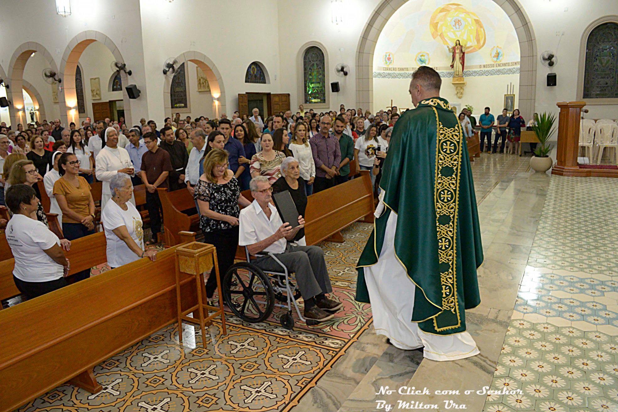 Na abertura da missa foram recebidos os celebrantes e auxiliares, com o cântico do hino comemorativo aos 70 anos da Paróquia, composto pelos músicos Cássia Medina e Tiago Marcelo, bem como apresentada a logomarca alusiva à data.
