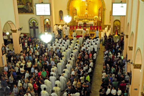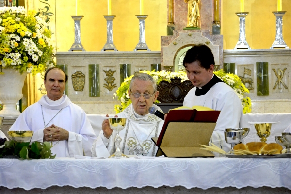 O bispo diocesano, Dom Luiz Antonio Cipolini, padres, seminaristas, religiosos e centenas de leigos e de leigas se reuniram na noite da segunda-feira, dia 24, na Igreja Santo Antônio, em Marília, para missa em ação de graças pelos 80 anos do bispo emérito Dom Osvaldo Giuntini.