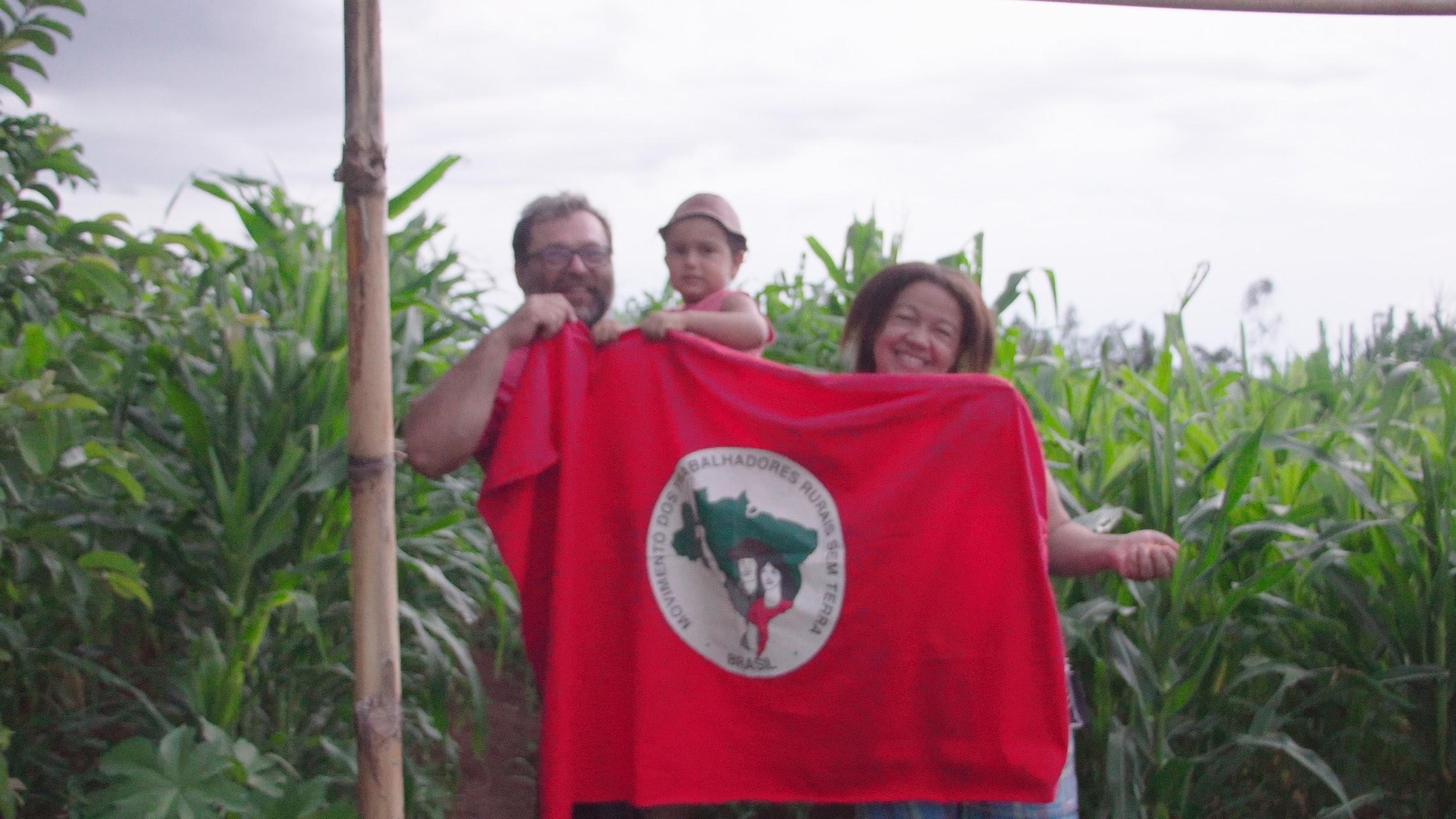 O agricultor assentado e educador Sérgio Farias de Oliveira e sua família em cena de Pontal. Videoclipe foi gravado durante uma viagem que percorreu trechos do Pontal do Paranapanema, historicamente uma das regiões com mais forte atuação do MST (Divulgação).