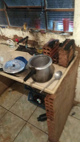 Fogão improvisado sobre a pia da cozinha, onde houve o acidente (Reprodução/Panorama Notícia).