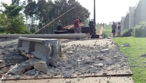 Um acidente na tarde deste sábado (17) na rua Santos Dumont, em Adamantina, causou danos e assustou o motorista e moradores próximos. A rua dá acesso ao Residencial Portugal e aos bairros Eldorado I, Eldorado II e outros.