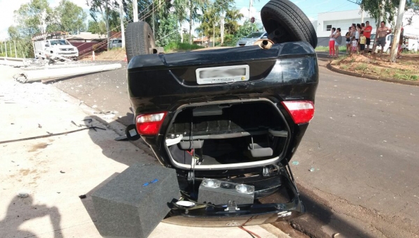 Motorista perde controle, carro capota e derruba dois postes na Santos Dumont