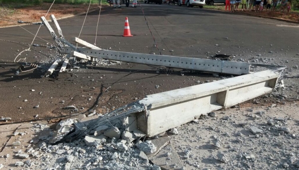 O veículo deve ser removido do local e os postes de energia deverão ser substituídos em caráter emergencial pela equipe de manutenção da concessionária de energia elétrica.