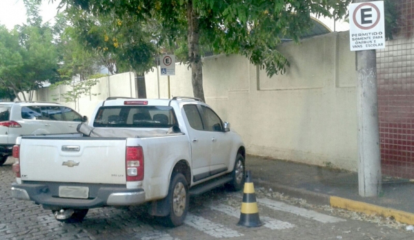 Motoristas estacionam irregularmente em áreas para vans e ônibus escolares