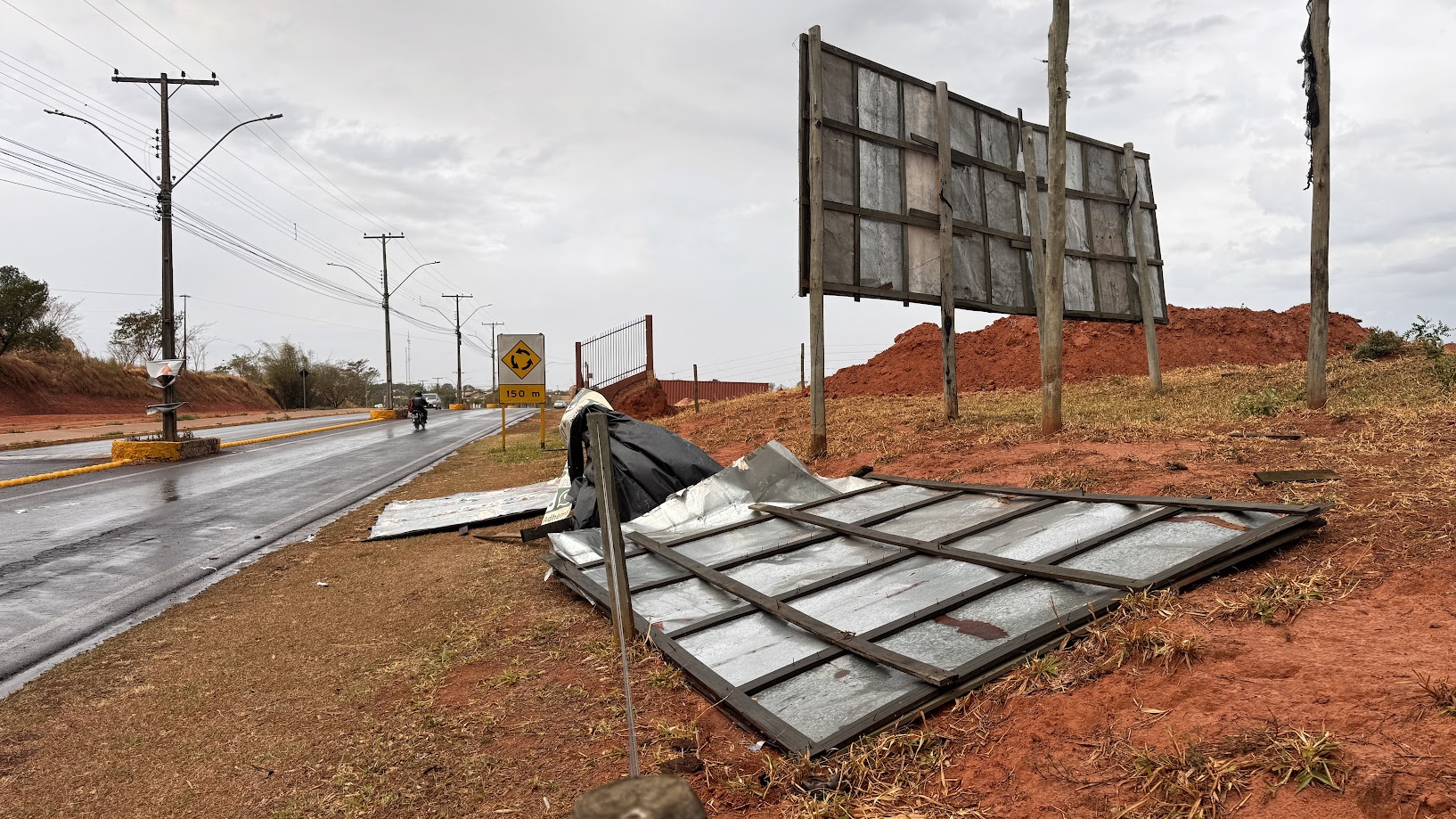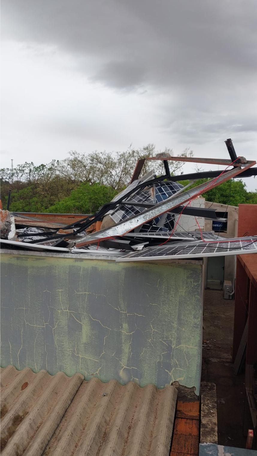 A reportagem esteve em uma casa na Rua Cedro, Parque Itaipus, que teve as placas fotovoltaicas e toda a estrutura levados pelas rajadas de vento. O mesmo prejuízo ocorreu em outros imóveis na cidade.