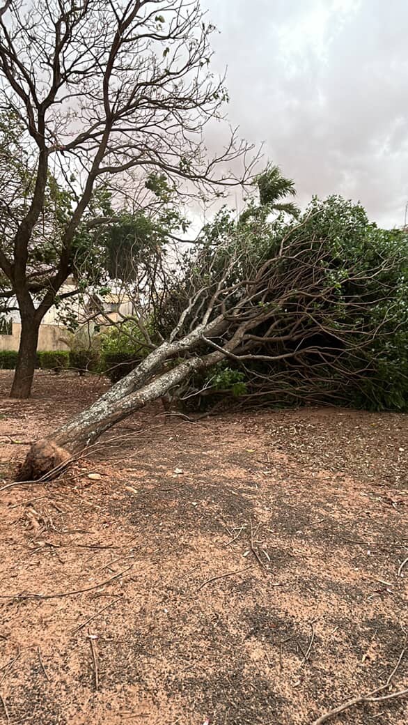 O mesmo ocorreu nesta segunda-feira, com tempestades ocasionais e ventos intensos, que causaram queda de árvores, destelhamentos e interrupções no fornecimento de energia. A concessionária elétrica Energisa colocou equipes de prontidão.