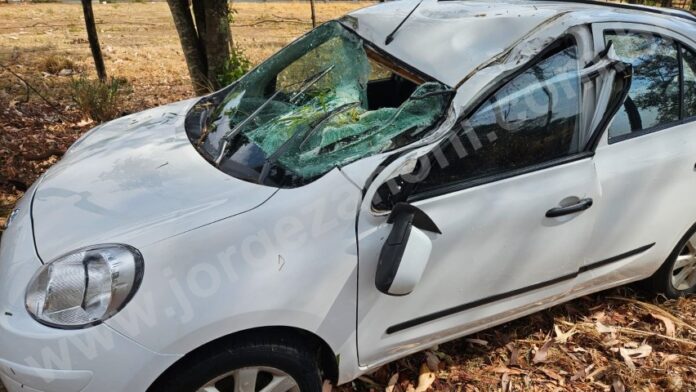 Carro atingido por queda de árvore em Dracena (Reprodução: Site Jorge Zanoni).