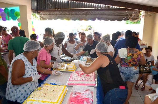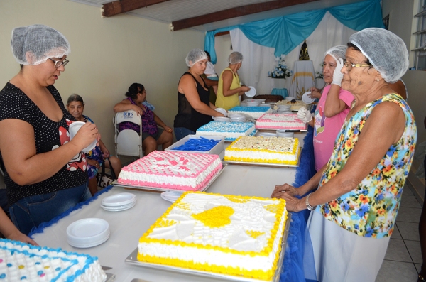 Para as festividades deste 12 de outubro, os números são surpreendentes. Foram produzidas 60 formas de bolos recheados, 1.000 maçãs do amor, 1.500 sacolinhas de doces, 3.000 gelinhos, além de refrigerantes distribuídos em abundância. A fartura era tanta que as pessoas levaram bolos para suas casas, para consumir com suas famílias.