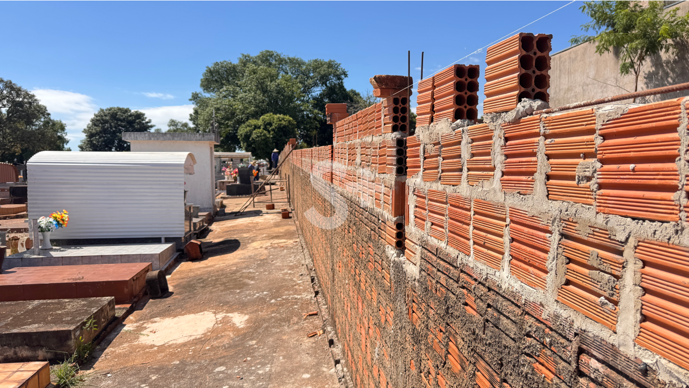 A Prefeitura de Adamantina executa obras de elevação da altura do muro do Cemitério da Saudade, na lateral que faz divisa com a faixa de servidão que separa o local do bairro Jardim Europa. A intervenção integra um conjunto de medidas adotadas pela administração municipal para reforçar a segurança do espaço, que vem sendo alvo recorrente de furtos, principalmente de objetos metálicos e peças de bronze dos túmulos.