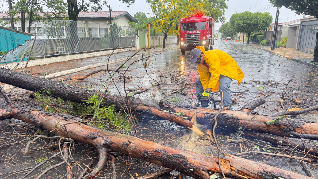 O Departamento Municipal de Trânsito sinalizou o local para garantir a segurança, enquanto os Bombeiros utilizaram motosserra para fracionar a árvore. Em seguida, o material foi removido da pista e organizado na calçada, permitindo a liberação da passagem.