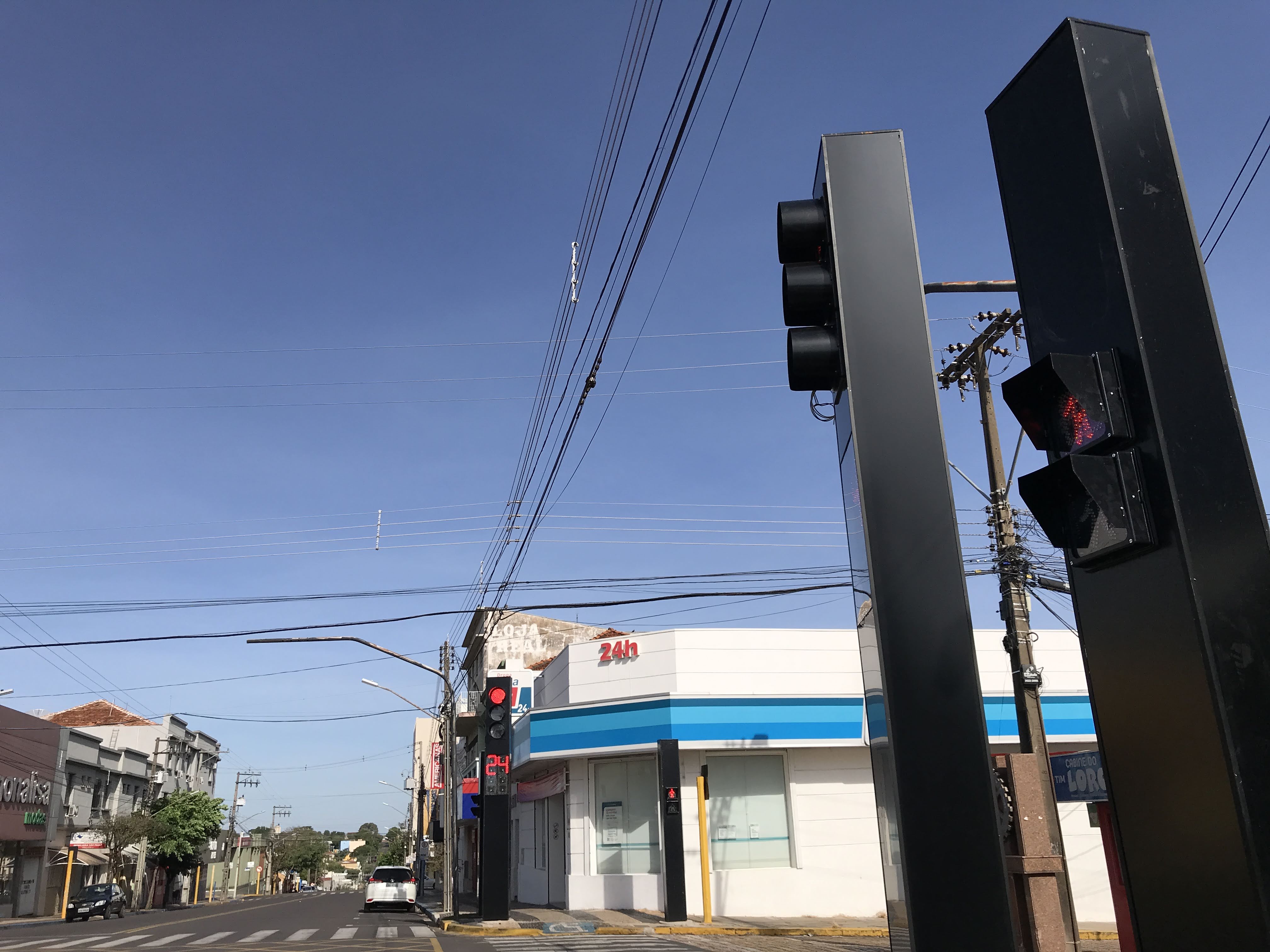 Foram ativados nesta semana os dois novos totens semafóricos em dois cruzamentos na Avenida Rio Branco, nas esquinas com a Avenida Santo Antônio e com a Rua Joaquim Nabuco, centro de adamantina. Os novos dispositivos têm layout mais moderno e tempo para a travessia de pedestres.