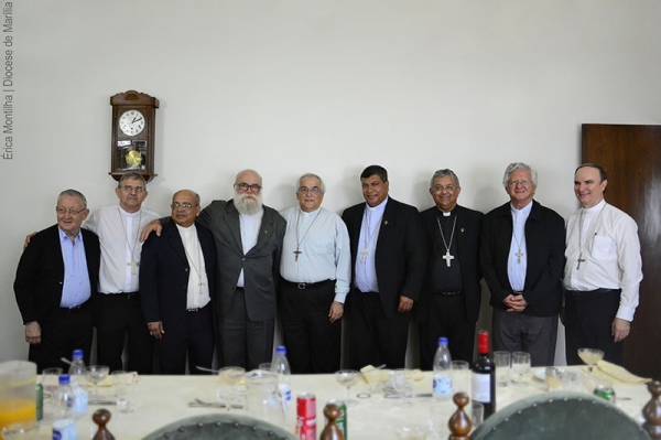 Um almoço com os bispos de Araçatuba, Assis, Bauru, Botucatu, Lins e Presidente Prudente, na residência de Dom Luiz Antonio, encerrou a agenda do Núncio em Marília. O bispo emérito de Marília, Dom Osvaldo Giuntini também participou da refeição.