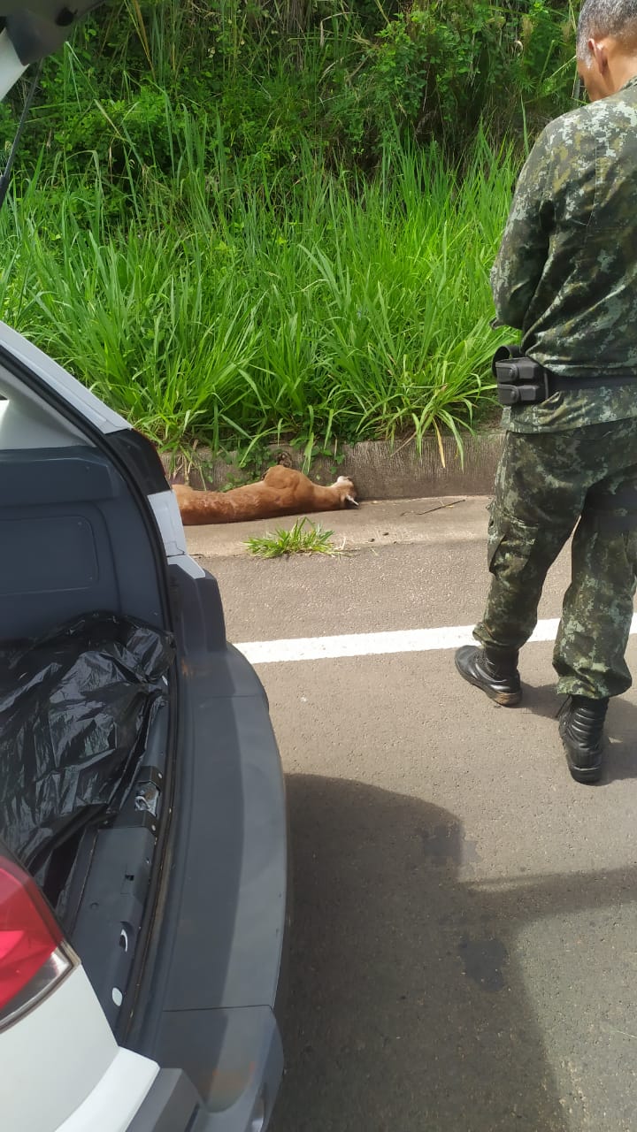 Chegando ao local os policiais localizaram o animal já sem vida no acostamento da via com sinais de atropelamento, sendo recolhido e destinado à vala sanitária por não ter condições de ser taxidermizado devido aos ferimentos.