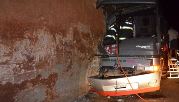 Um ônibus da Prefeitura Municipal de Flórida Paulista (SP), que transportava pacientes, colidiu contra a pilastra do pontilhão do trevo de acesso a Tupã, na Rodovia Comandante João Ribeiro de Barros (SP-294).