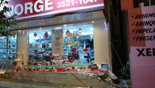 Ônibus desgovernado atinge bazar no centro de Adamantina