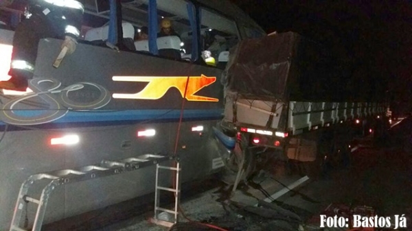 Uma carreta e um ônibus da empresa Expresso Prata, que vinha de São Paulo e teria como destino Bastos e Rinópolis, colidiram na Rodovia Comandante João Ribeiro de Barros (SP-294), proximidades do trevo de acesso a Iacri, na manhã desta sexta-feira, dia 21.