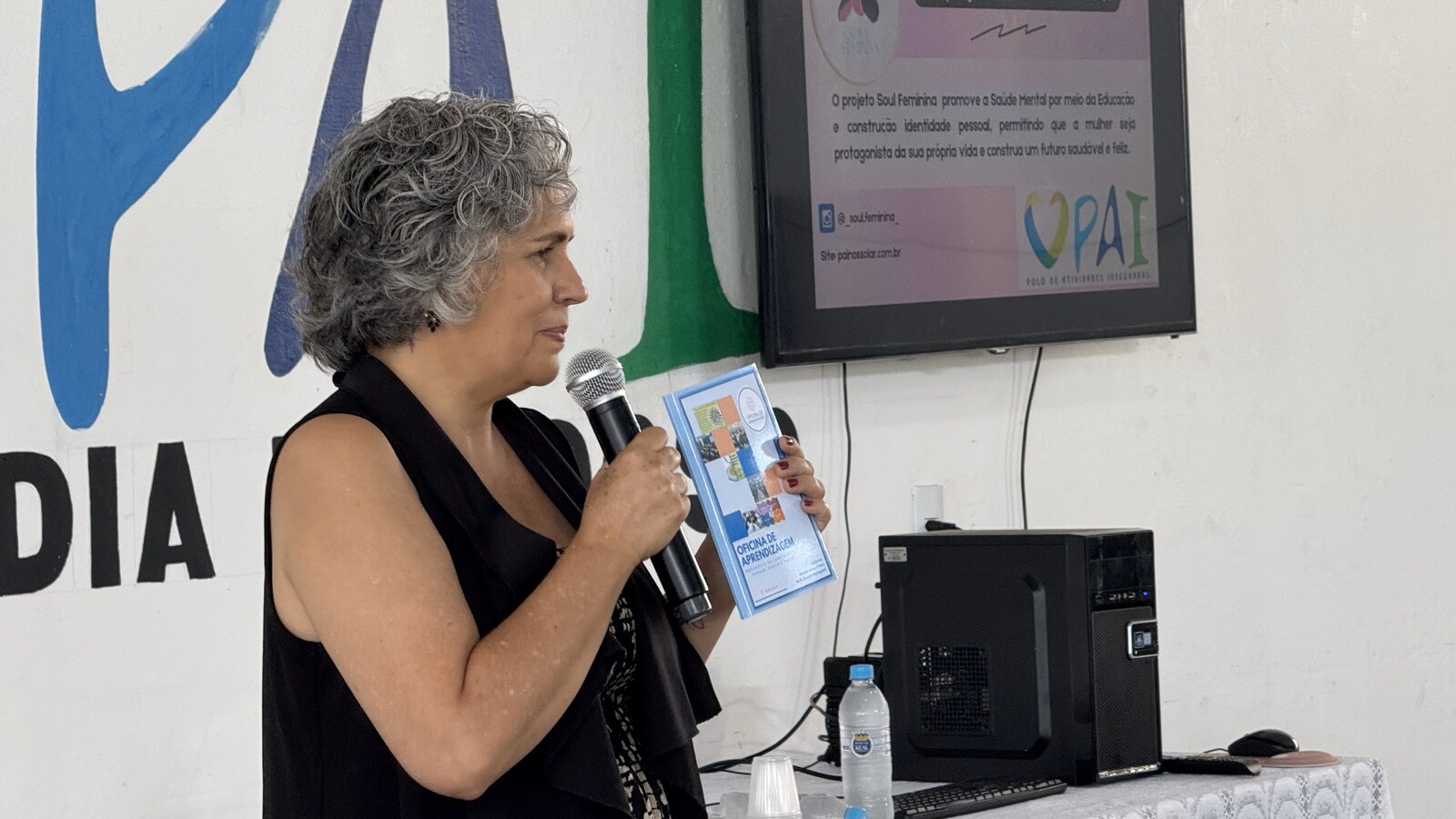 Após a abertura e coffee break foi iniciada a segunda parte da programação, com a oficina integrativa “Alimento e autocuidado: conexão entre comida, corpo e mente” para os profissionais da instituição PAI Nosso Lar, conduzida por dois convidados: Fulvio lermano e Eveline Bergamine Rodrigues, de Batatais (SP).