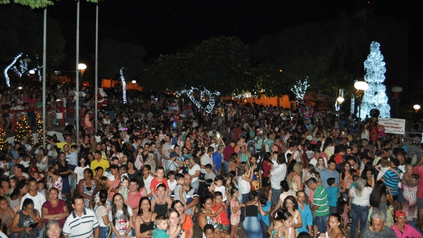 Quando subiu ao palco, o bom velhinho entregou ao prefeito Márcio Cardim a Estrela de Natal e neste momento, toda a iluminação que foi instalada em diferentes pontos da cidade foi acesa.