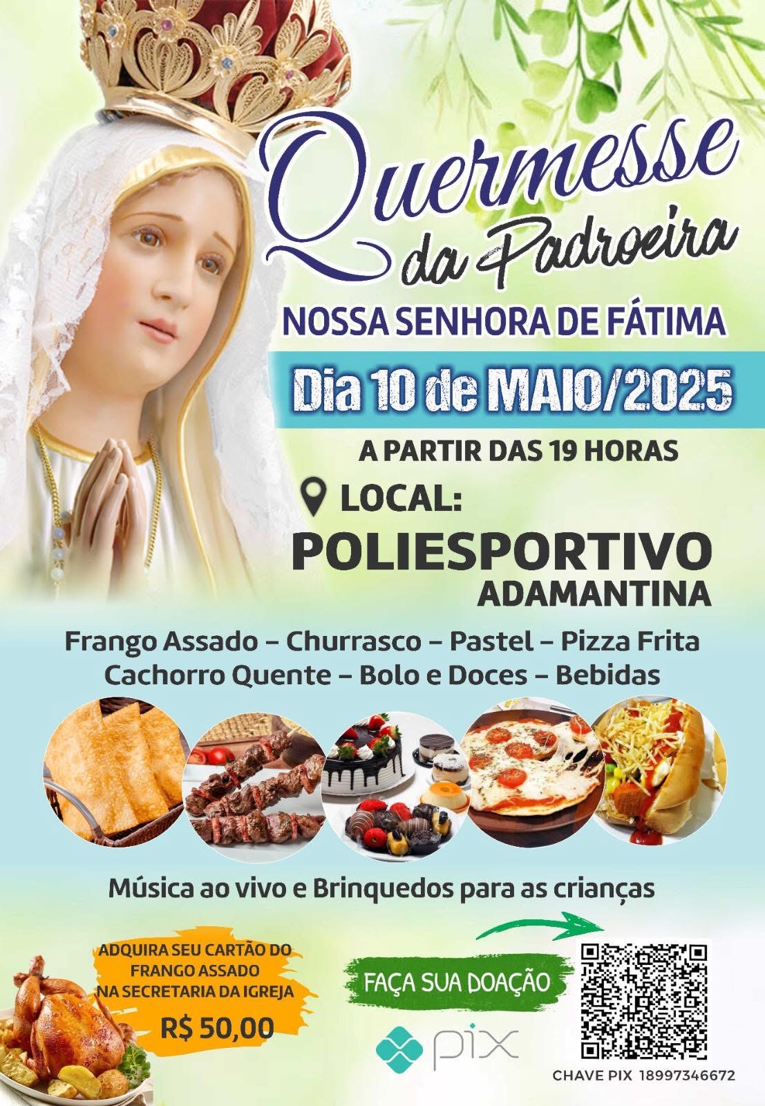 A Paróquia Nossa Senhora de Fátima, em Adamantina, promove neste sábado (10) a tradicional Quermesse da Padroeira, evento que integra as celebrações do mês dedicado à Santa, cuja festa litúrgica é comemorada em 13 de maio.