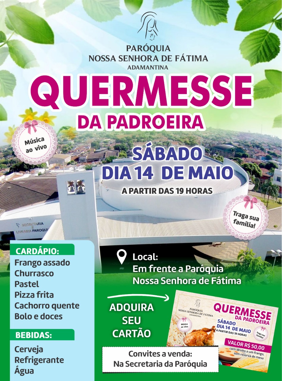 - Dia 14 – Sábado – Quermesse (não haverá Missa neste dia)
