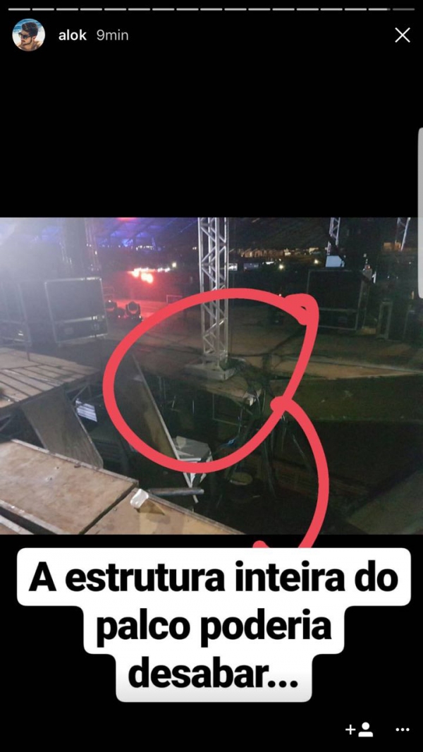 O problema envolvendo a estrutura foi mostrado pelo próprio artista, em seu perfil no Instagram, onde Alok interage com o público e mostra o local que desabou. O vídeo traz ainda o texto “Palco caiu”.