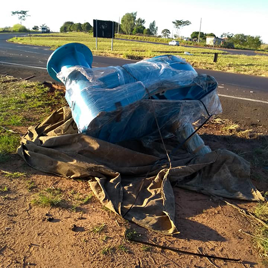 Peça era transportada na carroceria de caminhão e caiu no acostamento (Foto: Claudemir Américo dos Santos).