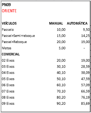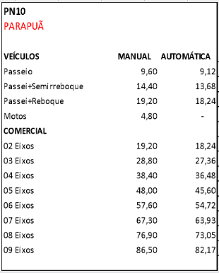 Confira no link os valores atualizados em vigor a partir deste sábado, em todas as praças operadas pela concessionária.